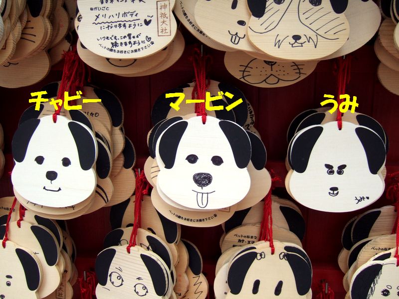 この『神祇大社』は犬のお守りを売っていて、絵馬も書けるんです。