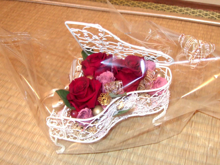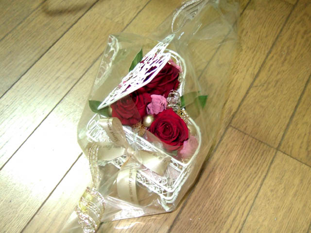 勤続年数が長いこともあって、プリザーブドのお花にしました。